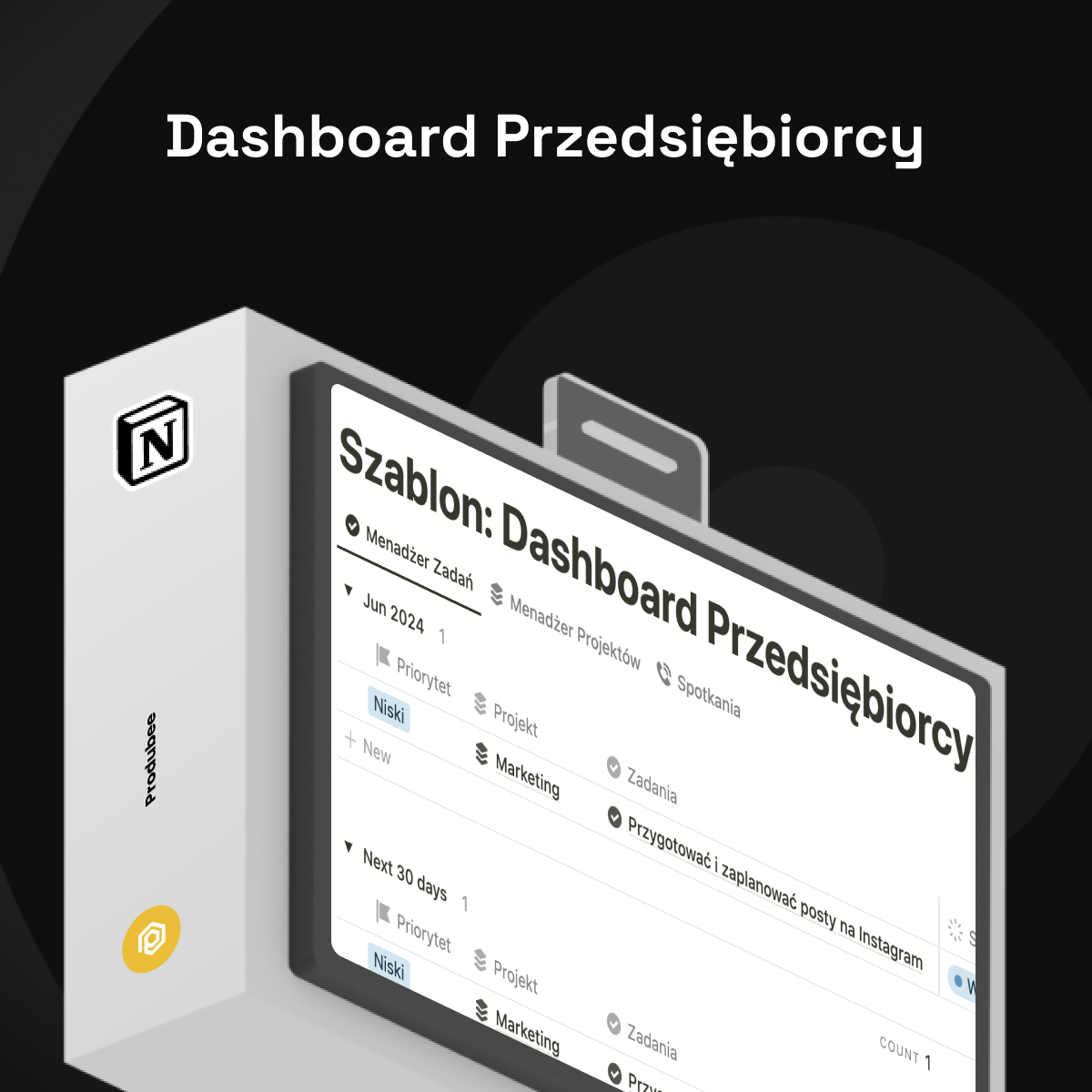 Kompleksowy szablon stworzony aby pomóc w zarządzaniu różnymi aspektami prowadzenia firmy. Dzięki niemu możesz śledzić swoje zadania, projekty czy spotkania. To również finanse i harmonogramy w jednym, zintegrowanym miejscu – bez konieczności przełączania się między różnymi aplikacjami. Szablon ułatwia organizację pracy, podejmowanie decyzji oraz monitorowanie postępów, co pozwala na efektywniejsze zarządzanie firmą.